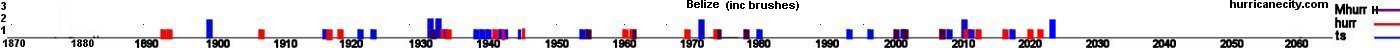 - 2020 September 3rd Hurricane Nana hits just south Belize City with a tiny 75 mph wind field while moving west-southwest. Hit map