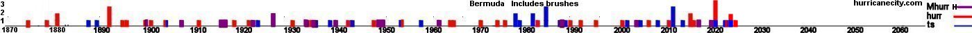 - 2014 October 12th, Fay becomes a hurricane while passing over the island with 75 mph winds causing extensive damage on the island. NHC final report