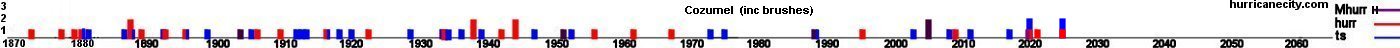 - 2020 October 7th Hurricane Delta southern eye wall hits northern Cozumel with 105 mph winds. Hit map