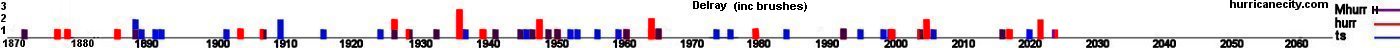 Delray Beach brushed or hit every 2.19 yearsAverage years between direct hurricane hits. (hurricane force winds for at least a few hours)