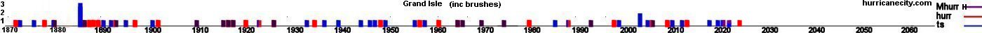- 2021 August 29th Hurricane Ida passes just southwest by 15 miles with 150 mph winds but the right front eye wall hammers them extreme damage, storm tide 11.2ft. Hit map | Aftermath driving through Houma | NHC Report | radar animation (Brian McNoldy, Univ. of Miami, Rosenstiel School) | RAMMB-CIRA Satellite Library