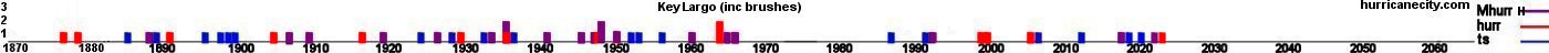 Key Largo Brushed or hit every 2.47 yearsAverage years between direct hurricane hits. (hurricane force winds for at least a few hours)