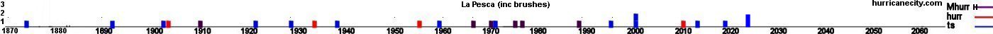 - 2010 June 30th, Hurricane Alex hits just north with 90 mph winds while moving west & strengthening 947 mb. Track | Model History