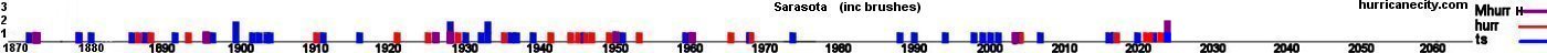 - 2024 October 9th Major Hurricane Milton hits with 120 mph winds from the west-southwest eye passes over 959 mb. Hit map | Our coverage from Sarasota as it happened | NHC report