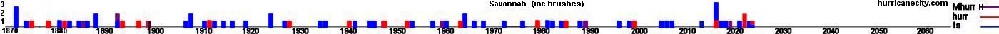 2024 September 27th Hurricane Helene brushes to the west with 75 mph winds while moving north.This area's hurricane history