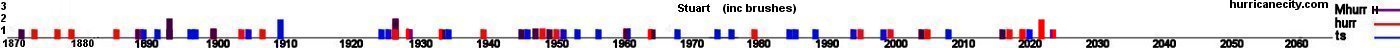 2024 October 10th Hurricane Milton brushes 74 miles to the north at closest approach with 90 mph winds while moving east-northeast.This area's hurricane history