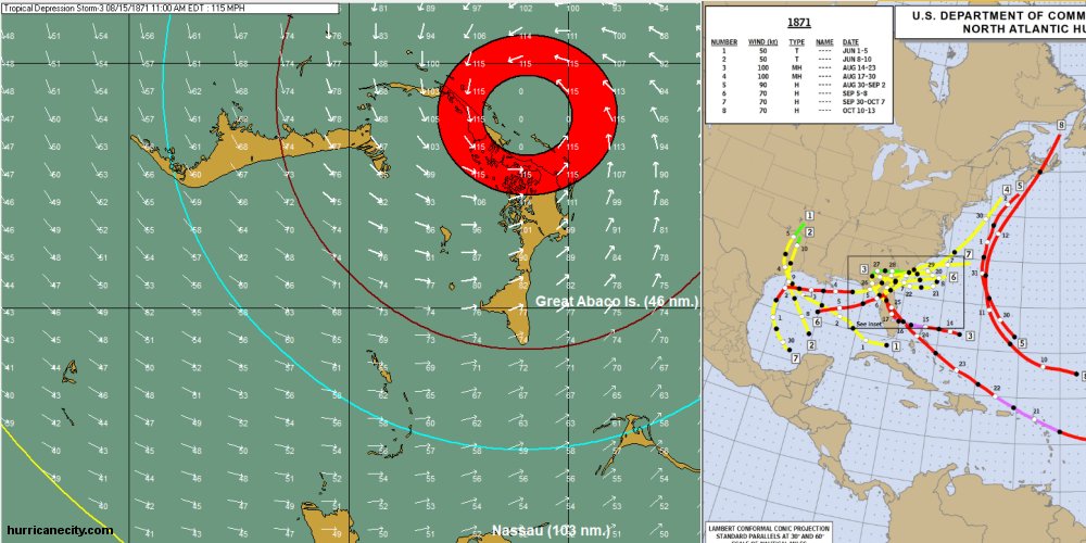Not all names are noted. Also, storms before 1950 were not named. Not every stat on every storm description is given. (since 1871)