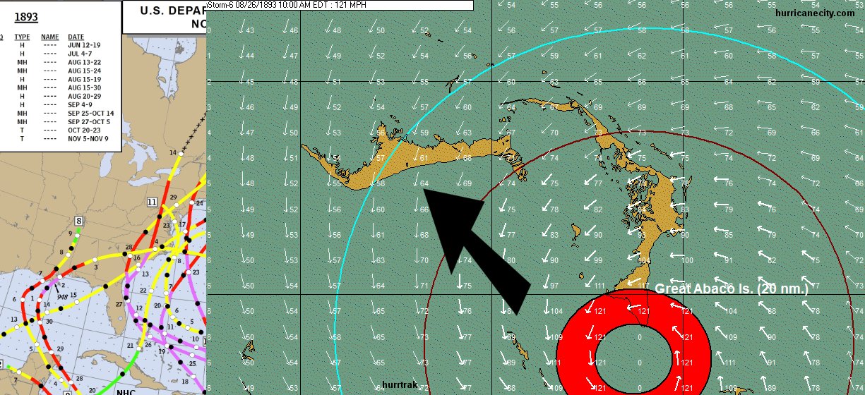 - 1893 August 26th 120 mph from the east-southeast. Hit map